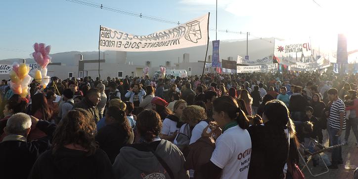 La caravana de autos, motos y peatones era interminable en el nuevo acceso al polo urbanístico donde ayer se entregaron las primeras 330 viviendas de un total de 970. La mayoría de la gente debió caminar un par de kilómetros dado que la seguridad obligó a dejar los vehículos lejos del palco.