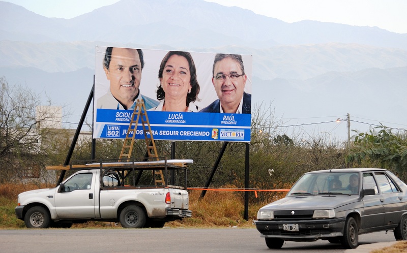 Como era de esperar, picó en punta el oficialismo local y nacional del Frente para la Victoria (FpV), que no obstante algunos escarceos preliminares muestra una imagen de retomada unidad detrás de las figuras de Daniel Scioli, Lucía Corpacci y Raúl Jalil, candidatos a presidente de la Nación, a gobernadora de la provincia y a intendente de la Capital, respectivamente. En una primera versión desplegó importantes afiches por la Av. Recalde, aprovechando el estratégico tránsito hacia el predio de la Fiesta del Poncho.