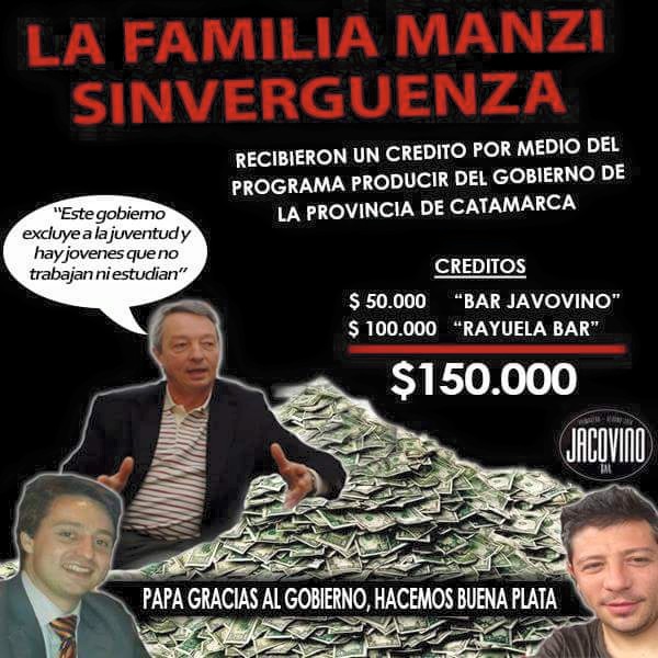 De este modo, Mariano Rubén Manzi recibió un aporte de 50.000 pesos destinado a la ampliación del "Bar Jacovino” de esta Capital, un proyecto productivo que fue acompañado por la Subsecretaría de Industria y Comercio del Ministerio de Producción y Desarrollo, y se aprobó mediante la resolución Ministerial 140 del 30 de julio de 2013. Afortunadamente, es al menos un joven catamarqueño – como otros miles- que ya no depende de los supuestos planes sin futuro que tanto preocupan a Manzi.
