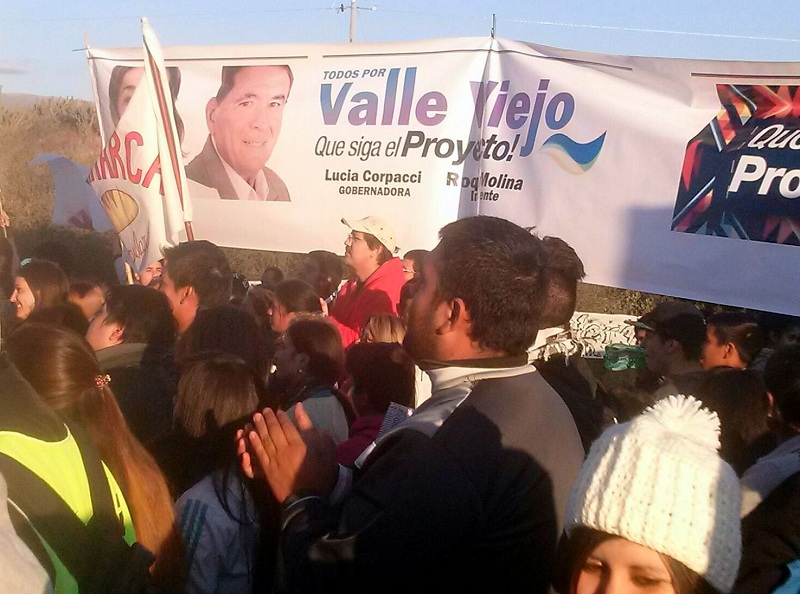 Por el lado de Valle Viejo, la intendenta Natalia Soria, quien va por su reelección, aprovechó su condición de anfitriona y por su rol institucional del presente hasta tuvo el privilegio de abrir la lista de oradores. El merchandising proselitista corrió por cuenta del candidato a senador provincial, Julio Segura, quien se presentó con una "tráfic” ploteada con su imagen –la misma con la que había largado su campaña con Luis Barrionuevo, para el F3P-, a la que ahora sumó la cara y la leyenda de "Lucía, gobernadora” y de "Natalia, intendenta”, con el escudo del Frente para la Victoria en la puerta.