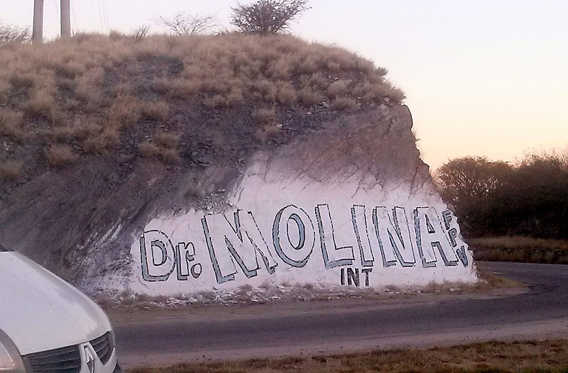 Más vistosa se advirtió la presencia del llamado "médico de los humildes”, que en la línea argumental del "Muña Muña” de Famatanca y como invitando a que "no se corte el tratamiento”, desde coloridas pancartas proponía que "Siga el proyecto…”, desde la convocatoria de "Todos por Valle Viejo” a favor de "Lucía Corpacci, gobernadora y "Roque Molina, intendente”. Oportuno, Molina también aprovechó –al menos por esta jornada-los pliegues pedregosos de la curva en el derivador de Polcos sobre la Ruta 1, para instalar su nombre junto a las siglas del "FPV”.