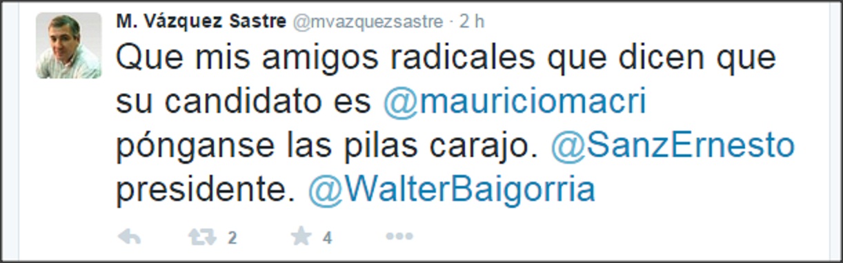 habrá acompañamiento a Ernesto Sanz, del radicalismo puro, o a Mauricio Macri,