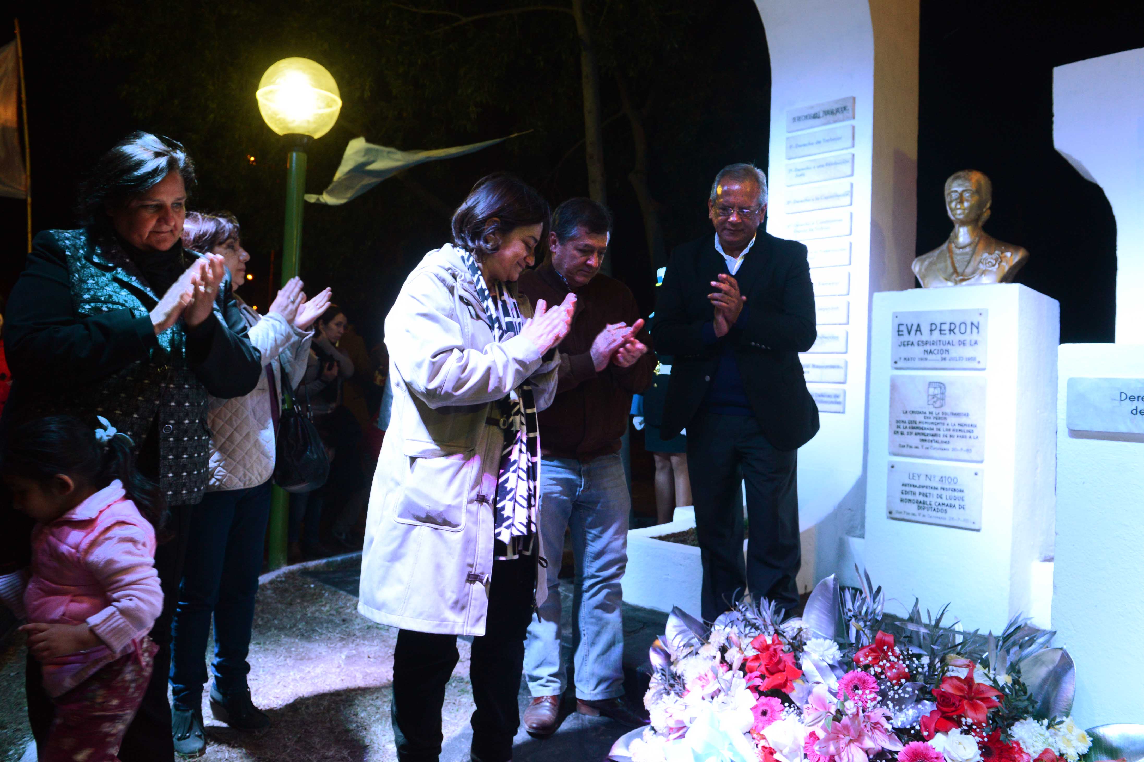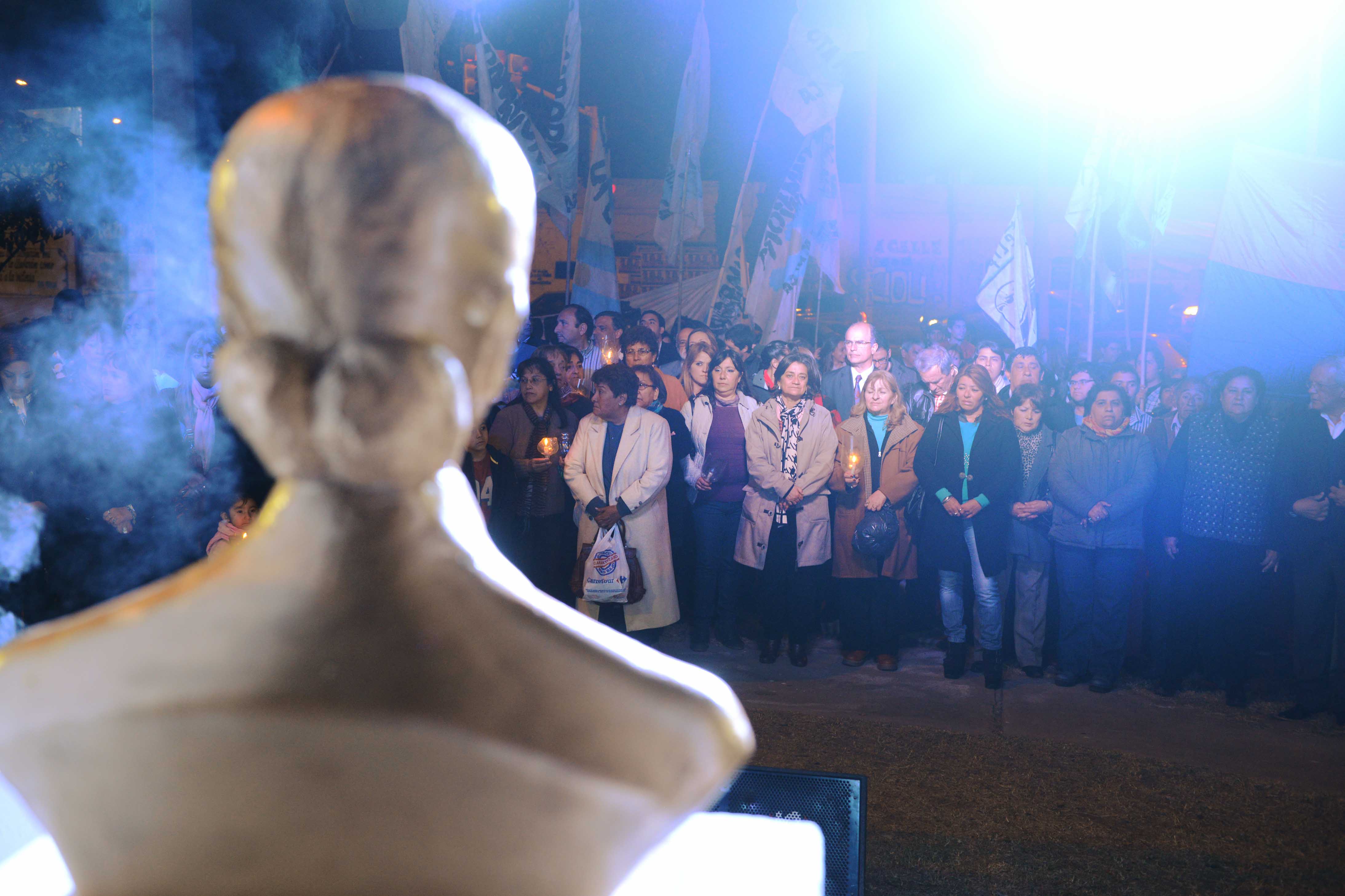 sociales, realizaron una marcha de antorchas hasta el monumento a "Evita” en Avenida Italia y Avenida Alem.