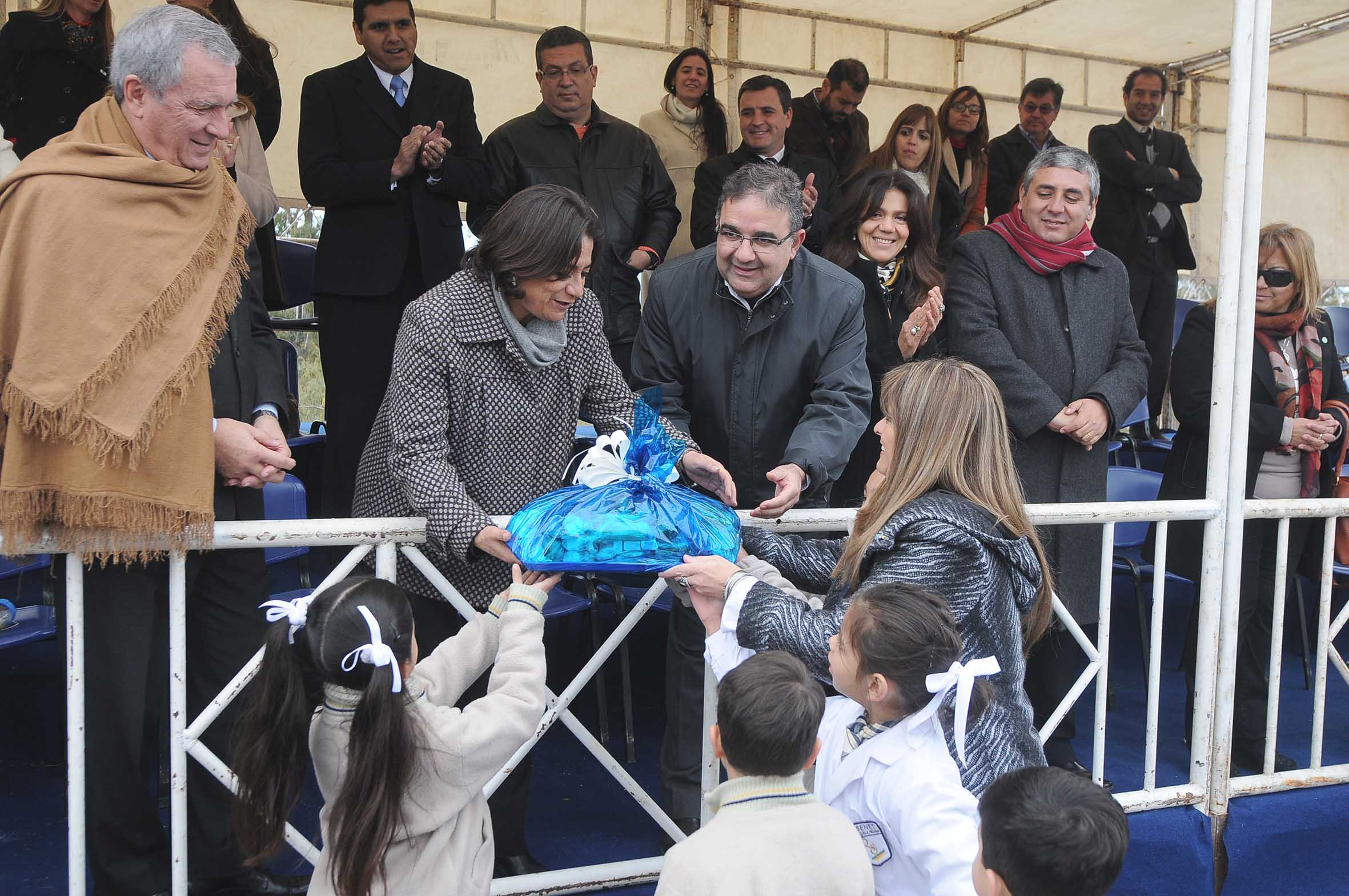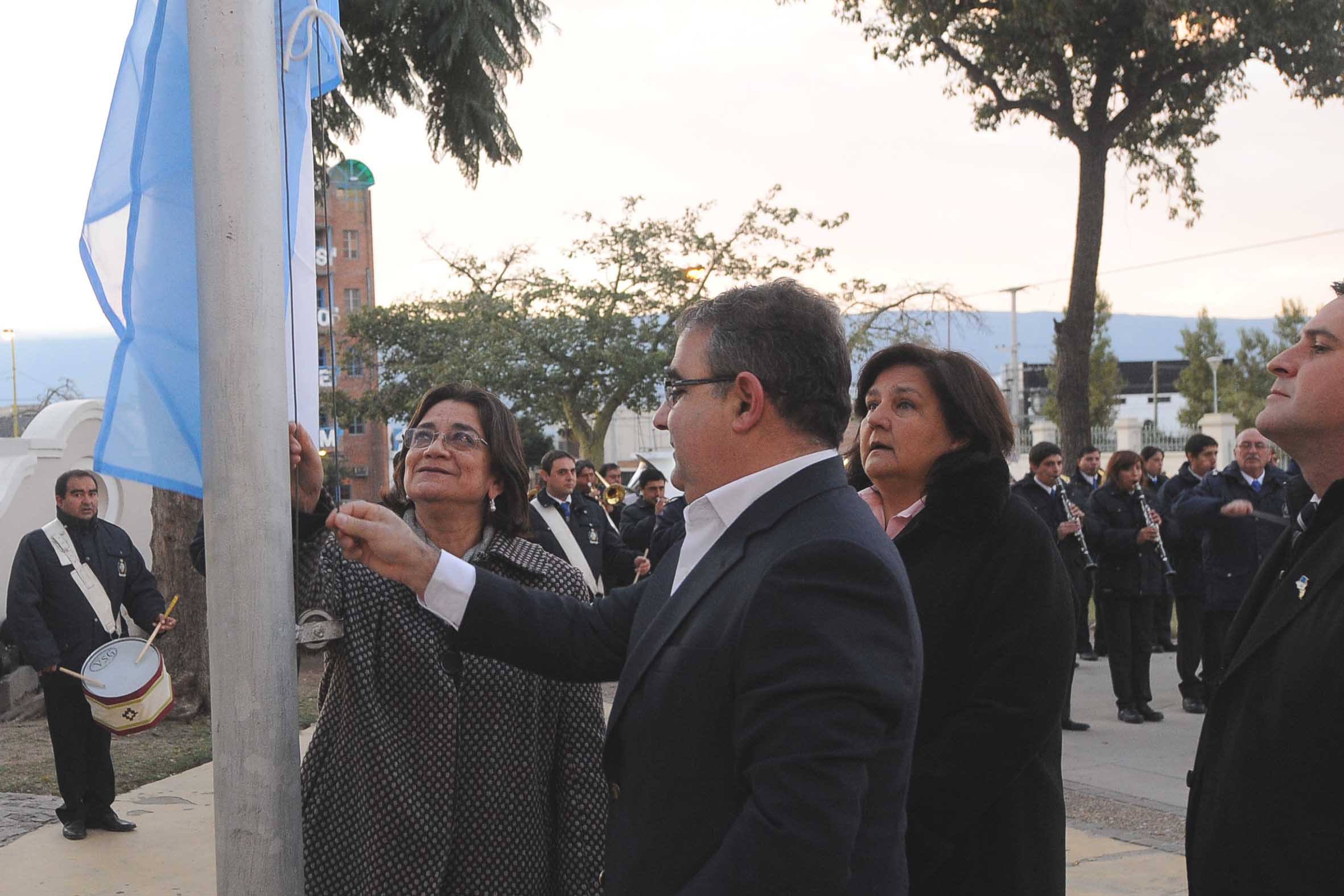 A las 8, la jefa de Estado izó la Bandera Nacional en la plaza 25 de Agosto junto al intendente capitalino Raúl Jalil, para luego dirigirse al Teatro del Sur, donde se ofreció el tradicional chocolate.