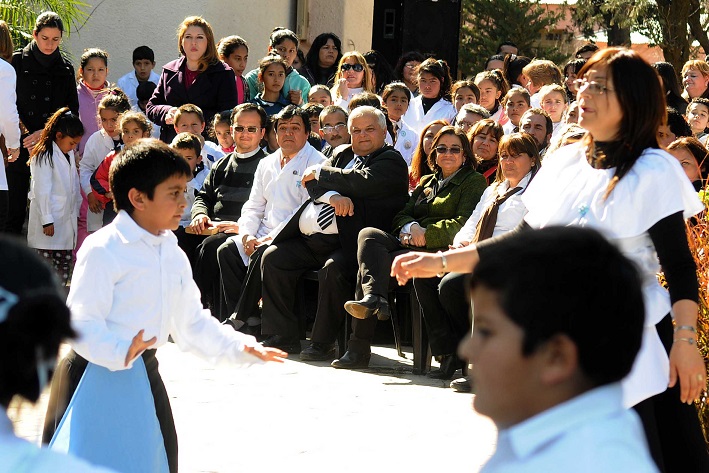 "Señor intendente de Recreo, compañero Daniel Polti; señora senadora nacional Inés Blas; señor diputado nacional Isauro Molina; señora senadora de La Paz, Patricia Sánchez; señor ministro de Obras Públicas, Rubén Dusso; compañero Cuello del Ministerio de Educación; señor secretario de la Vivienda, Octavio Gutiérrez; señores funcionarios de Educación que nos están acompañando, a la comunidad en general; el pueblo de La Paz –porque acá está gente de La Dorada, de Recreo… así que voy a decir La Paz directamente-; señorita directora, señoritas maestras, a los queridos chicos…