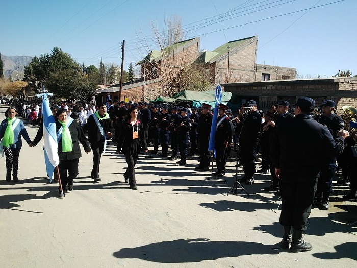 El acto estuvo acompañado por la banda de música de la policía de la provincia que le puso brillo al desfile cívico militar que se realizó por las calles de San José.