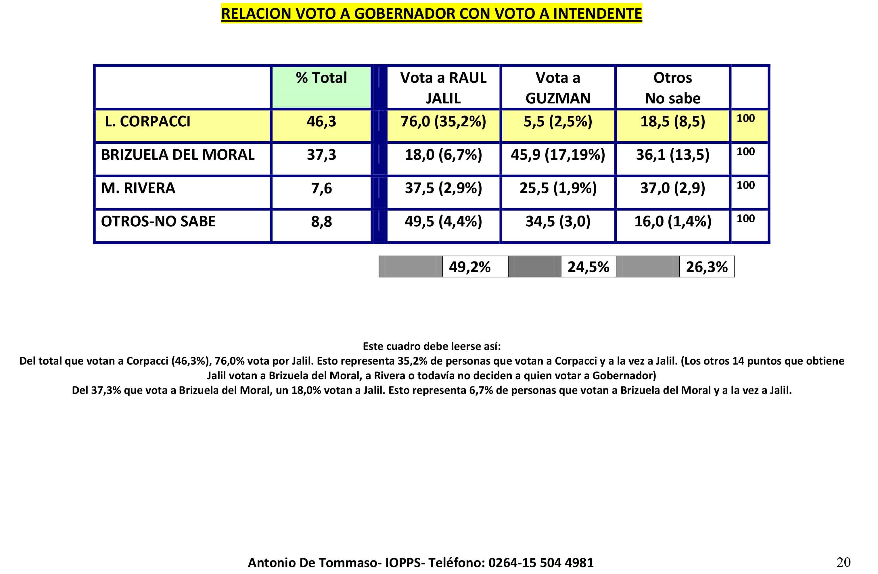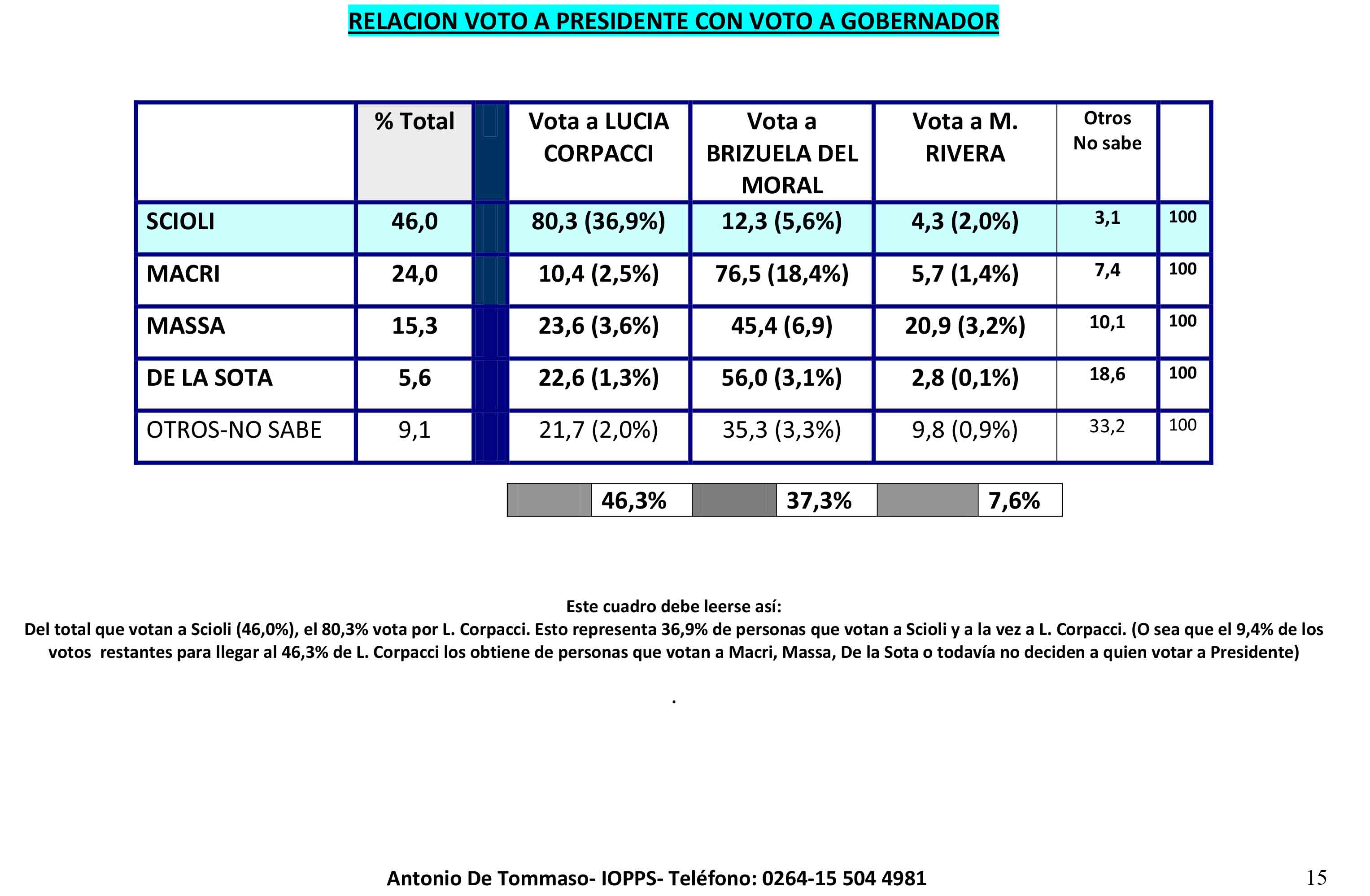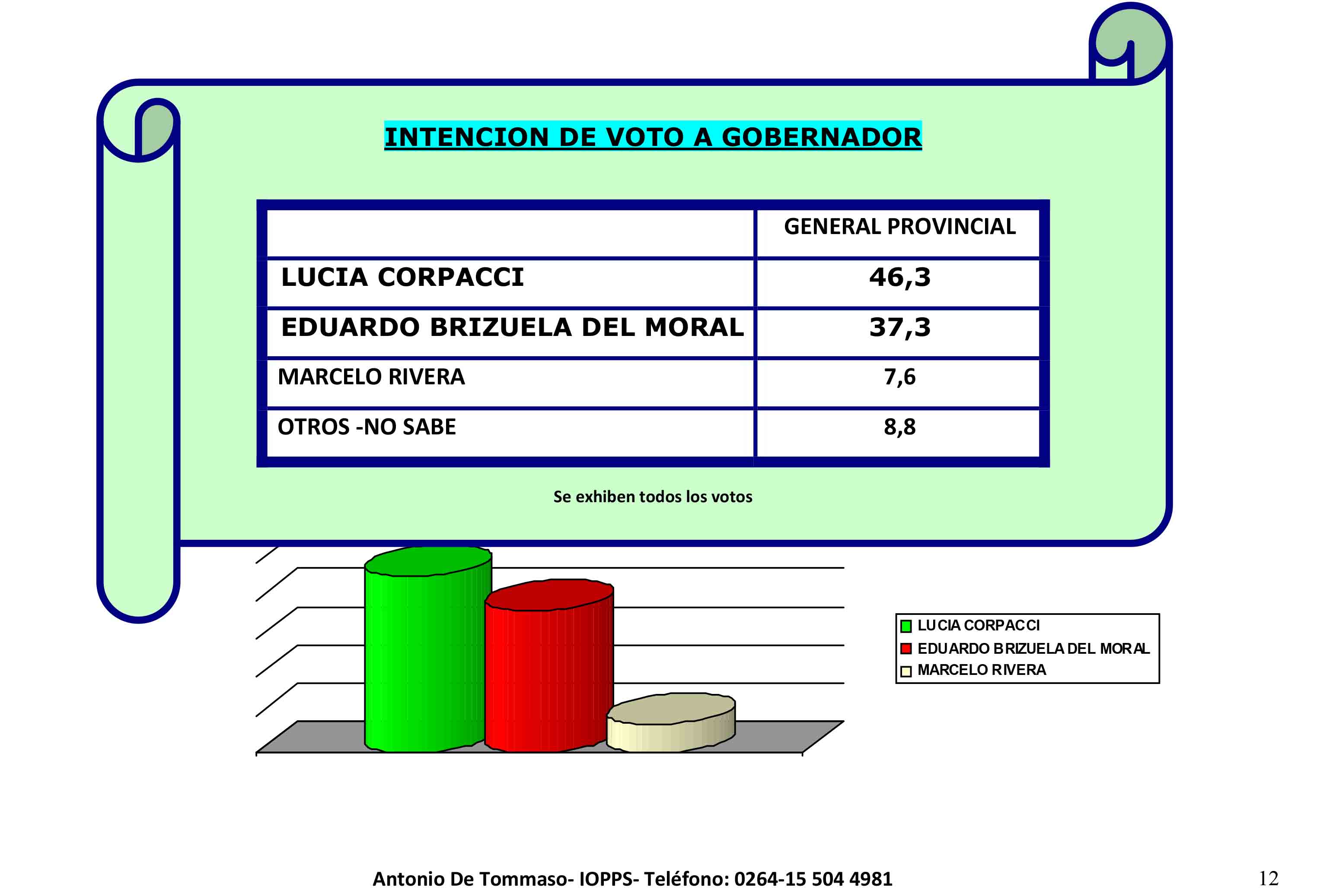 Corpacci quien va camino a su reelección tiene un 46,3 de intención de voto por