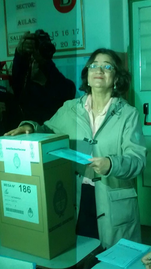 La gobernadora Lucía Corpacci llegó a la escuela Padre Ramón de la Quintana, donde en minutos emitirá su voto.