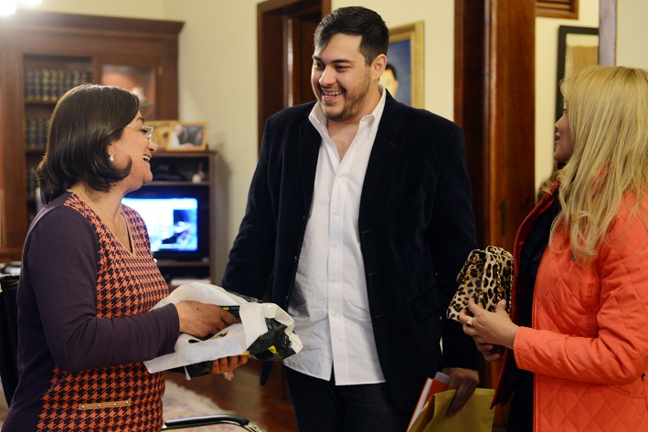 Acompañada por el intendente capitalino Raúl Jalil, Lucía expresó su admiración por las cualidades y el sacrificio de Nicolás, a quien felicitó por sus logros y le señaló que es un orgullo para todos los catamarqueños contar con un artista de su talla.