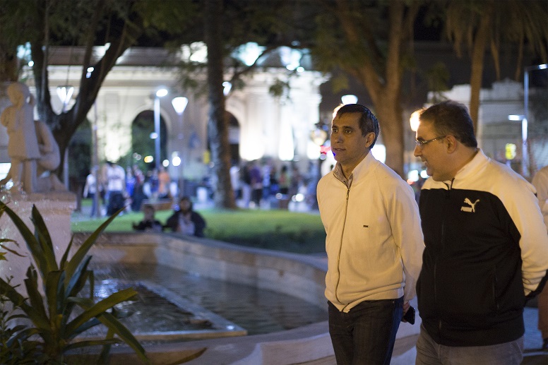 El flamante jefe comunal riojano se interesó sobre todo por los trabajos realizados por la actual gestión municipal catamarqueña en la plaza 25 de Mayo para jerarquizar y revalorizar el espacio.