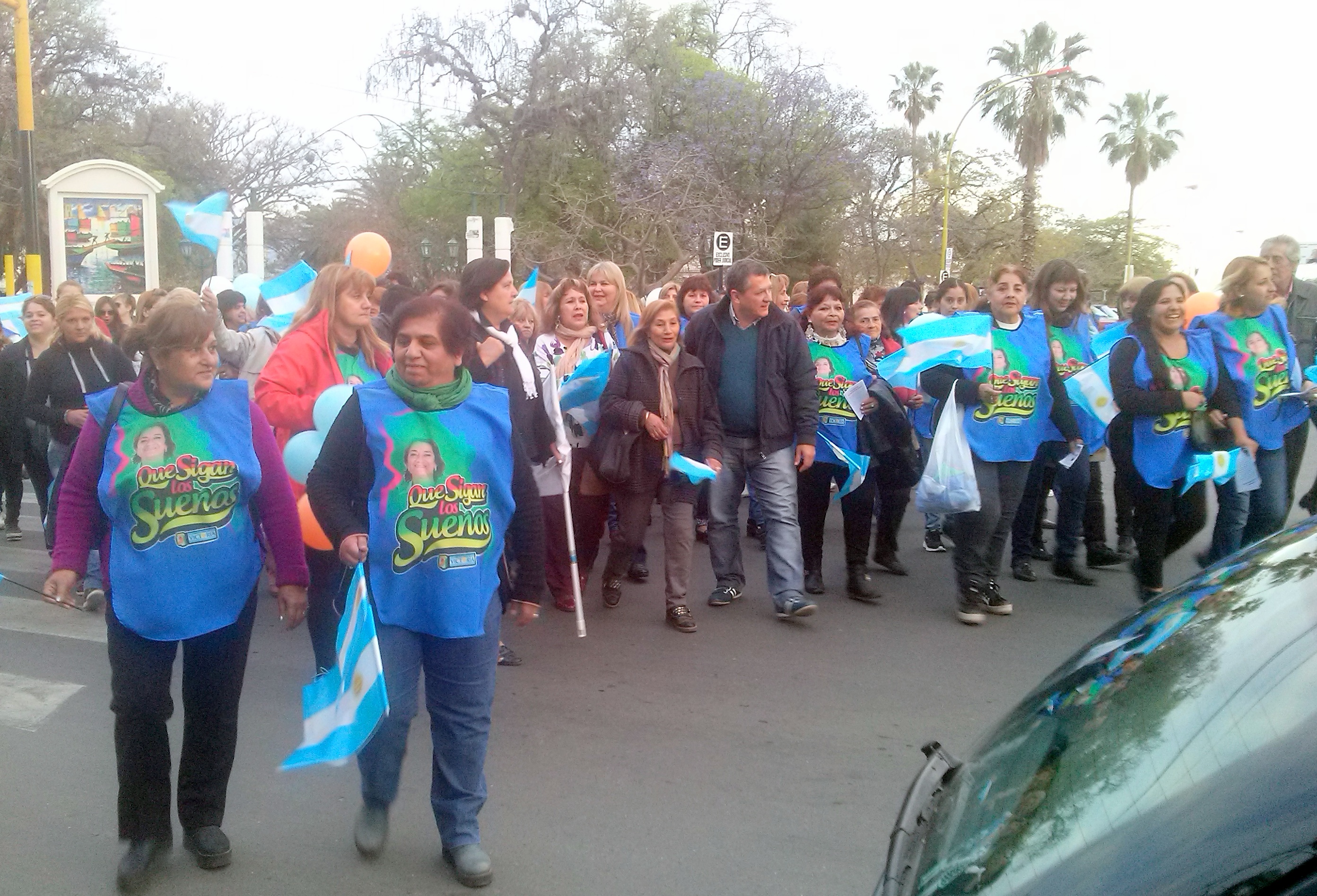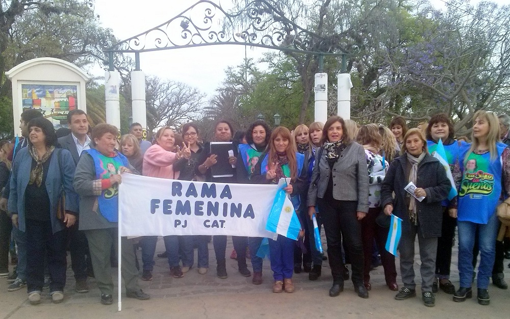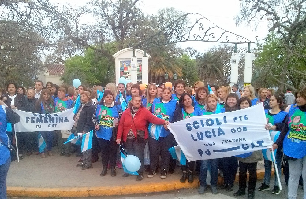Para la ocasión, las mujeres de la Rama Femenina lucían un colorido chaleco con la imagen de la gobernadora de la provincia, la Dra. Lucía Corpacci, acompañada de la frase "Que sigan los sueños…”, utilizada en la campaña proselitista del Frente para la Victoria (FPV). Mientras, dos pancartas a la cabeza de la movilización identificaban al grupo con la "Rama Femenia, PJ-Catamarca” y la propuesta "Scioli, presidente”, "Lucía, gobernadora” con vistas a las elecciones generales del 25 de octubre.
