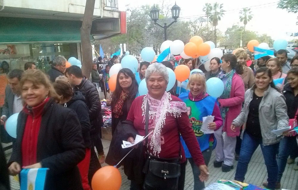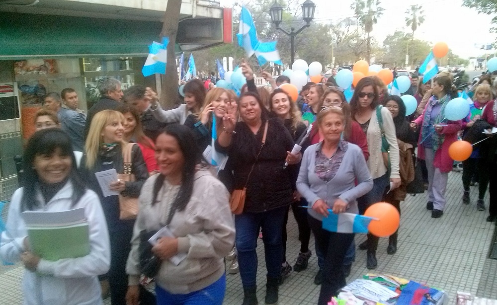 Encabezada por la secretaria general de la Rama Femenina del PJ, Ana Castro, y con la asistencia entre otras autoridades y dirigentes partidarios de la senador nacional Inés Blas de Zamora; la subsecretaria de Familia, Cristina Rosales; el senador provincial y jefe de campaña del FPV, Ramón Figueroa Castellanos; y el concejal Armando López Rodríguez, los manifestantes se concentraron en la plaza de La Estación, para desde allí marchar por la peatonal Rivadavia hasta la calle San Martín; por esta arteria hasta Sarmiento, y finalizar frente a la casa de Gobierno.