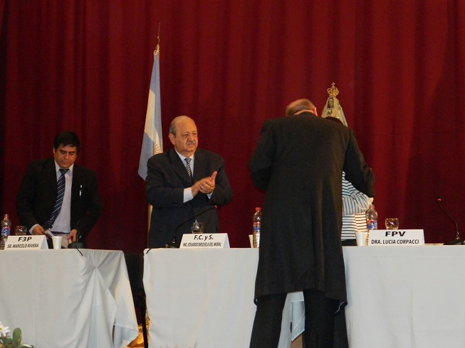 Al concluir el debate, el Obispo Diocesano entregó a la Dra. Lucía Corpacci, al Ing. Eduardo Brizuela del Moral y al Sr. Marcelo Rivera un presente consistente en un ejemplar de la Biblia del NOA diseñada especialmente para esta región del país, y les agradeció su participación en esta propuesta de la Iglesia, a través de la Pastoral Social, en bien de la ciudadanía y la calidad institucional.