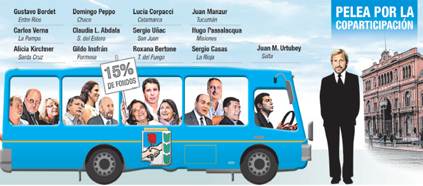 Encabezados por el riojano Sergio Uñac y por el salteño Juan Manuel Urtubey, los gobernadores peronistas están citados a las 12 en el Salón de los Escudos de la Casa de Gobierno. Llevarán el documento "Por un verdadero federalismo", elaborado el sábado pasado en la cumbre de San Juan, para reclamar por el giro de unos 14.500 millones de pesos a la Capital Federal para financiar el traspaso de la Policía Federal. Las provincias de Córdoba, San Luis y Santa Fe lograron una sentencia de la Corte Suprema de Justicia a favor de la devolución del 15 por ciento semanas antes de que Cristina de Kirchner finalizara su mandato.
