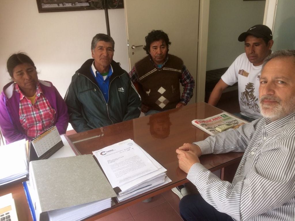 La cacique Epifanía Rosa Salgado, junto a Eusebio Efraín Pachado, Crecencio Salgado y Pedro Eugenio Guerra, representantes de la comunidad aborigen de Corral Blanco, ubicada en la localidad de Laguna Blanca, al norte del departamento Belén, se encuentran en la Capital provincial subsidiados por el Senador para poder hospedarse y abastecerse mientras solucionan el problema.
