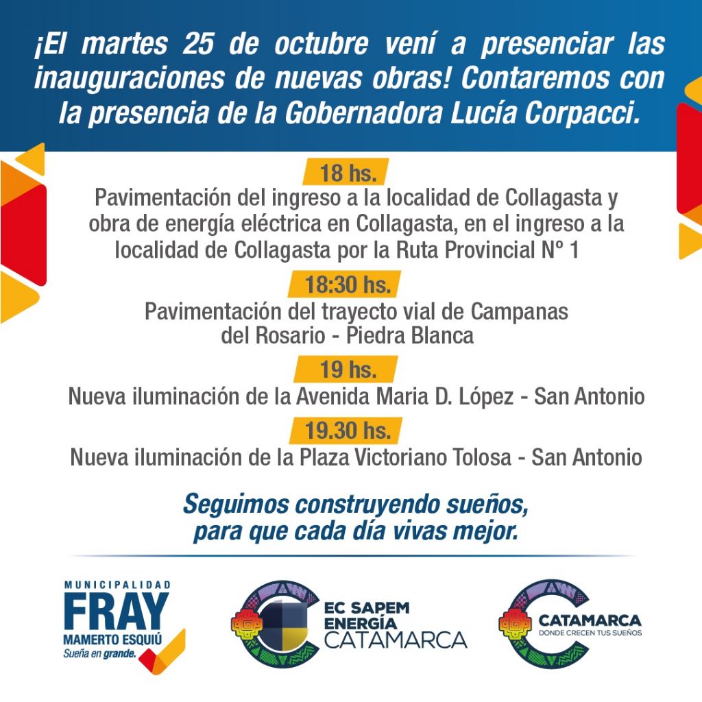 de octubre, a las 18 horas, en el ingreso a la localidad de Collagasta.