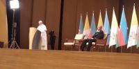Francisco en el Centro Heydar Aliyev de BAKU en Azerbaijan donde el sumo pontífice