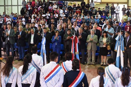 Recibidos por el director de la escuela, Héctor Infante, autoridades, docentes, alumnos y vecinos se congregaron para el acto central, que se realizó en el complejo deportivo de la escuela secundaria.