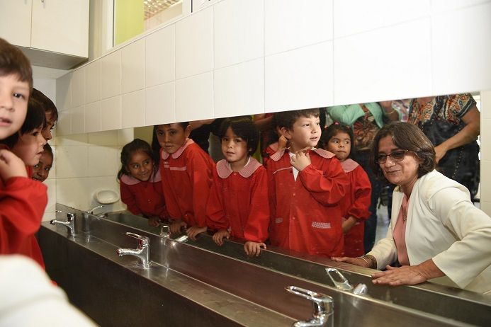 Dirigiéndose al cuerpo docente, luego de felicitar a quienes trabajaron en la ornamentación del jardín para el acto, la mandataria dijo: "Les deseo lo mejor, pongan mucho amor, porque ustedes son quienes van formando a estas criaturitas y tienen una enorme responsabilidad".
