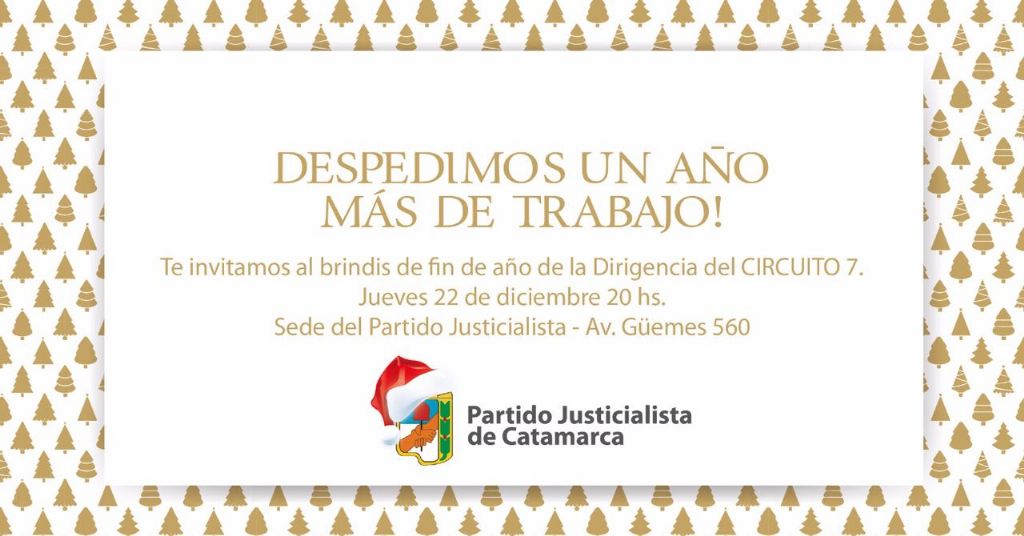 El Partido Justicialista de Catamarca invita a toda la dirigencia del circuito 7 a un sencillo brindis de fin de año en reconocimiento por la tarea social que vienen llevando adelante los diferentes referentes barriales y dirigenciales del circuito más grande la ciudad Capital.