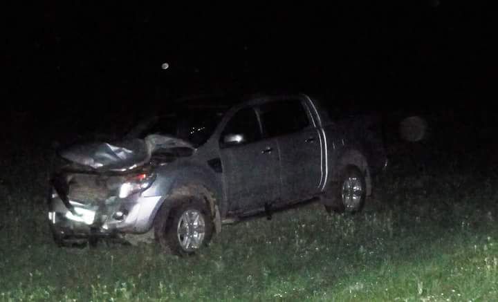 impactando de lleno en la parte frontal de la camioneta.