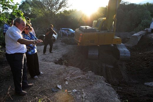 En su visita a Capayán, Lucía Corpacci y el ministro de Obras Públicas, Rubén Dusso, visitaron el tramo del canal de riego que se rompió en los últimos días.