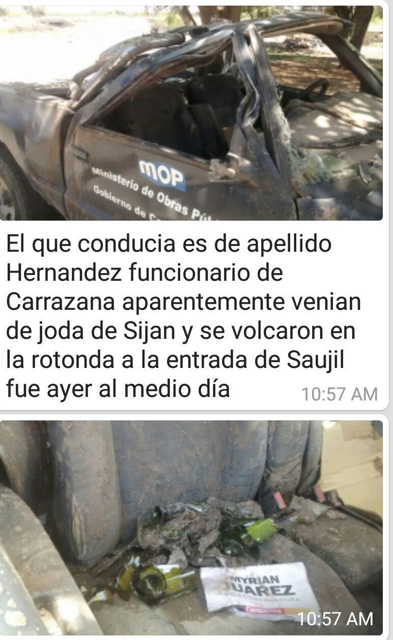 Ante estas "imágenes" que circulan x las redes vinculadas a un accidente ocurrido ayer al mediodía en el Dpto Pomán deseo expresar #mi"desconcierto" e incertidumbre x la "aparición" adjunta de papeles con #mi nombre... QUIZÁS una "casualidad", QUIZÁS una "travesura" QUIZÁS prácticas nocivas de las 'formas' de 'políticas viejas', de insensatez inexplicables...