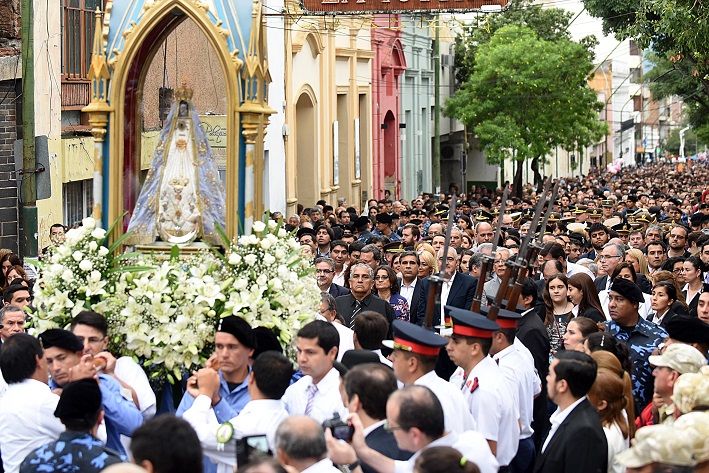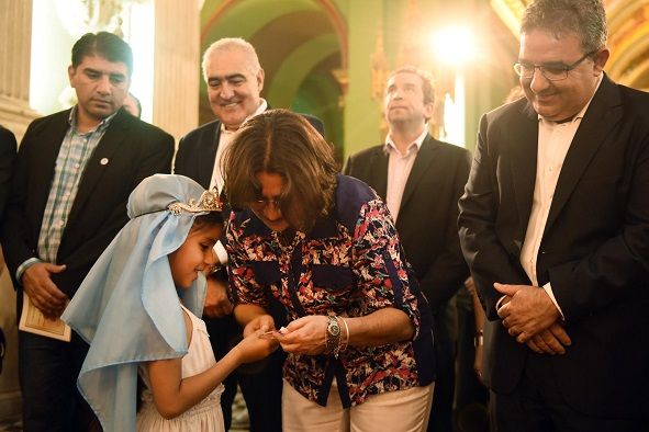 Acompañada por integrantes de su gabinete, la mandataria se sumó a la imponente celebración religiosa, que a pesar de la lluvia que caracterizó gran parte de la jornada, convocó a decenas de miles de fieles de distintos puntos del país para homenajear a la Madre Morena.
