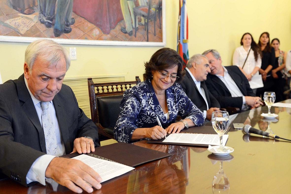 Lucía estuvo acompañada por el vicegobernador Octavio Gutiérrez, el ministro de Obras Públicas, Rubén Dusso, y el presidente del Fondo Fiduciario Federal de Infraestructura Regional (FFFIR), José Estabillo, con quien firmó el convenio.