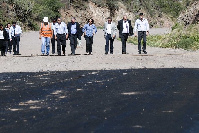 En el inicio de su visita, la mandataria observó los primeros trabajos de pavimentación que se realizan en el acceso norte de la Quebrada, que se vincula con Avenida Los Terebintos. Este tramo tiene una calle de 10 metros de ancho y contará con ciclovías en ambos extremos de la ruta. Además, se implementarán mesas y sillas de material para recreación y esparcimiento de turistas y transeúntes, como así también sitios de descanso y hasta un mirador hacia la Capital.