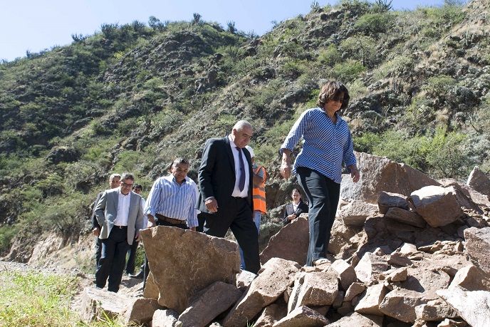 La Gobernadora Lucía Corpacci visitó este mediodía los avances de obra que se realiza en la Quebrada de Moreira, acompañada por el Vicegobernador, Octavio Gutierrez; el Intendente de la Capital, Raúl Jalil; el ministro de Obras Públicas, Rubén Dusso y el Administrador de Vialidad Provincial, Hugo Naranjo.
