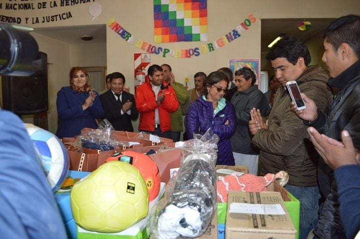 La comitiva acercó Kits escolares, zapatillas, indumentaria, elementos deportivos, entre otras donaciones para los pequeños alumnos. Igualmente la Vicegobernación dejó banderas para el establecimiento, un freezer, un armario y una motosierra.