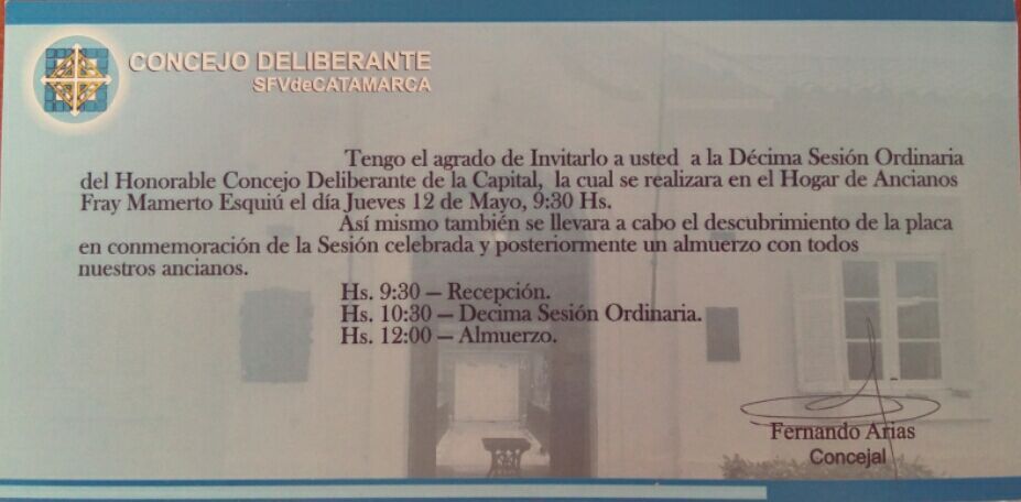 Mañana jueves, a partir de las 9,30, el Concejo Deliberante de la Capital llevará a cabo su décima sesión ordinaria, en el Hogar de Ancianos Fray M. Esquiú.