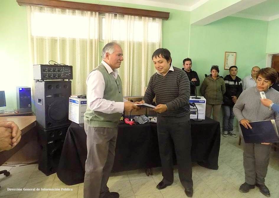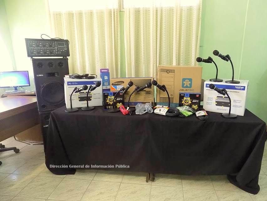 En un acto sencillo, y con la presencia del Presidente Provisional, don Máximo Moreno, los concejales Julio Áyame y Francisco Espinoza, y parte del personal del legislativo local, el Intendente Sebastián Nóblega, junto al Secretario de Coordinación y Gobierno Prof. Pedro Chayle, entregaron dos computadoras con sus accesorios completos de última generación y dos impresoras láser, para optimizar las tareas administrativas; como así también equipamiento de audio para ser utilizados en las sesiones, consistentes en una Consola Potenciada de sonido de 8 canales, dos bafles, un amplificador, ocho micrófonos profesionales, con sus respectivos pies flexibles, más cableado canon, y demás accesorios.