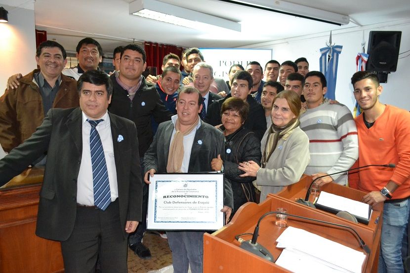 La Cámara de Diputados reconoció hoy a la dirigencia y cuerpo técnico del Club Defensores de Esquiú, por el logro deportivo obtenido el pasado fin de semana cuando ascendió al Torneo Federal B.