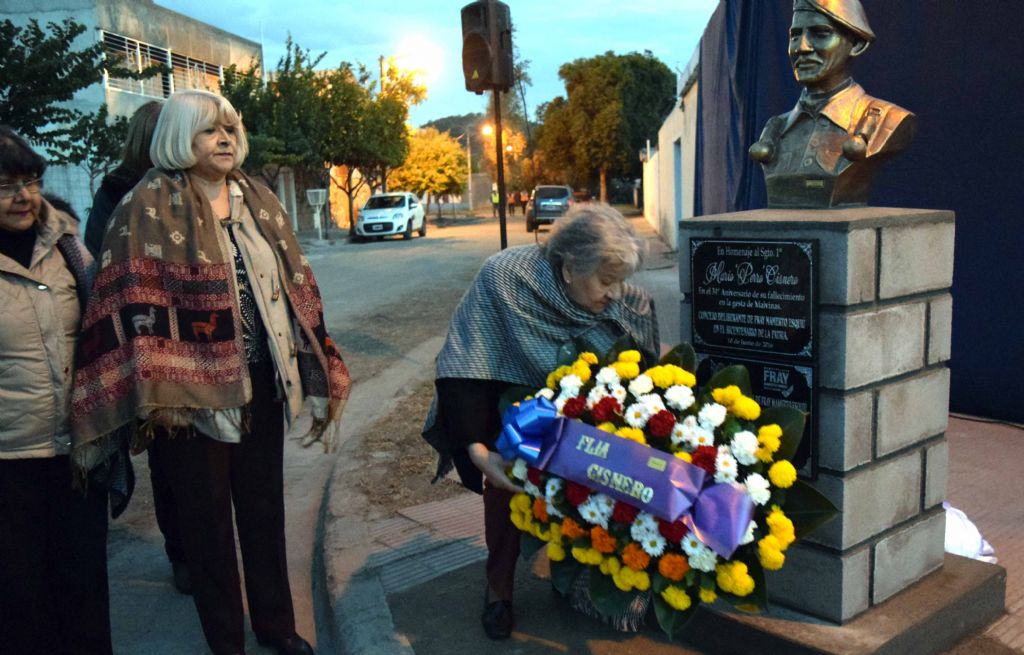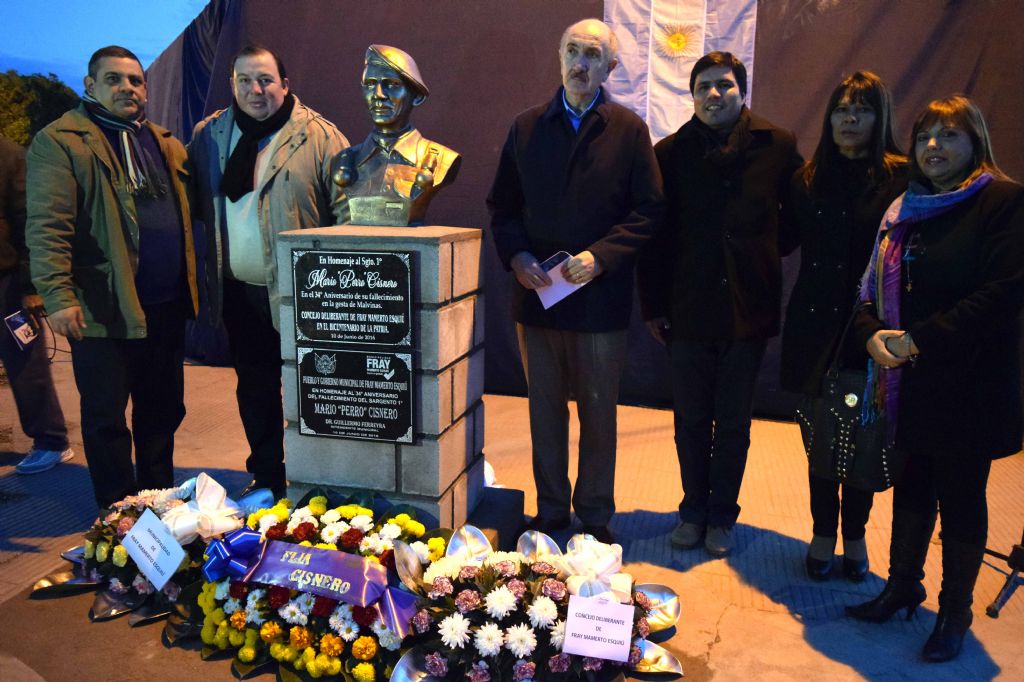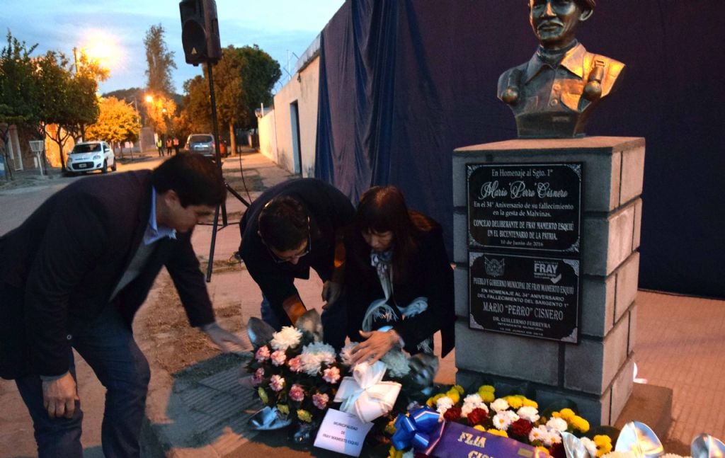 Con la presencia del Intendente Guillermo Ferreyra, los Sres. Concejales departamentales y familiares del Sgto. Mario Cisnero, se realizó el descubrimiento del busto en su honor, la ofrenda florar y la oficialización de la imposición de su nombre al pasaje vial ubicado sobre la escuela Estanislao Maldone -Ordenanza 1144/16 del Concejal Javier Cejas- más palabras alusivas de familiares y del Teniente Coronel Eduardo Villarroel ex jefe de la Compañía 602 del Ejercito Argentino.