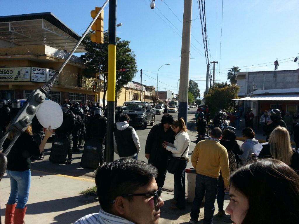 "De repente y cuando por medios radiales informaban que el presidente no pasaría por el lugar para evitar la protesta, la policía con escudos, armas largas de fuego y con la cara cubierta como terroristas, atacó a los manifestantes, en su mayoría mujeres. Sin mediar palabra alguna. Los policías parecían disfrutar de la represión y algunos hasta parecían disfrutar de este hecho. Lamentamos que este tipo de actitudes se den en el marco de la democracia y mucho más cuando acá somos un Pueblo de paz y trabajo. Está claro que al gobierno nacional no le interesa, ni el diálogo, ni la concordia y que sólo busca el disciplinamiento de la protesta social y para ello emplea los mismos recursos que la dictadura militar".