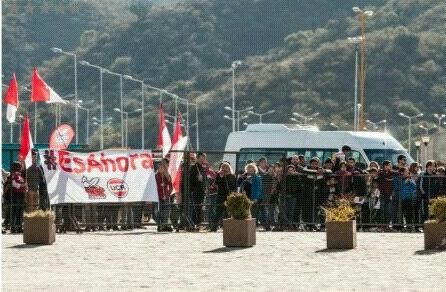 Con carteles de apoyo y banderas, un nutrido grupo de jóvenes boinablancas esperó al Presidente en el Predio Ferial, donde el lider de Cambiemos recorrió las instalaciones de la Fiesta del Poncho.