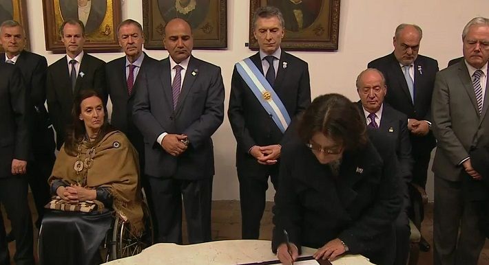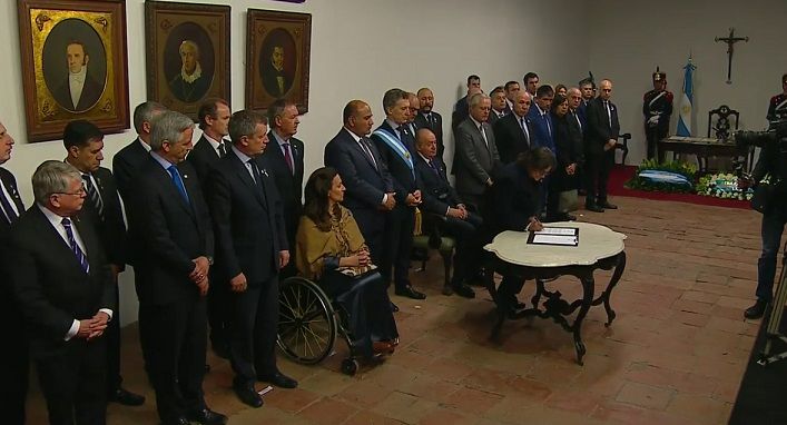 Luego, el Presidente y los Gobernadores partieron hacia la Casa Histórica y en el Salón de la Jura, se realizó un homenaje a los congresales de 1816, tras lo cual los gobernadores firmaron una nueva proclama de independencia nacional.