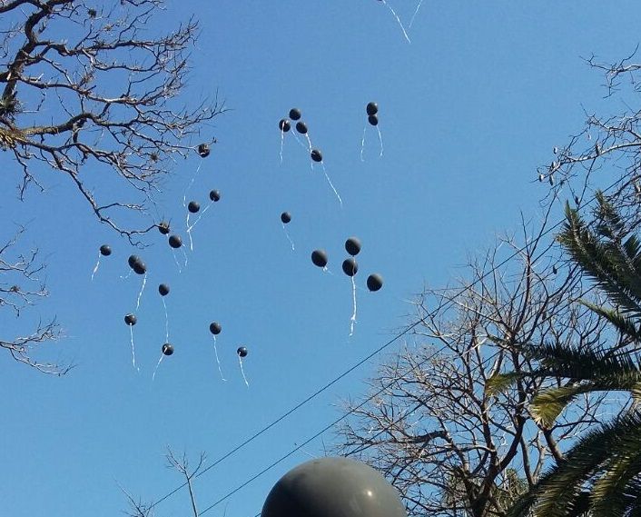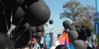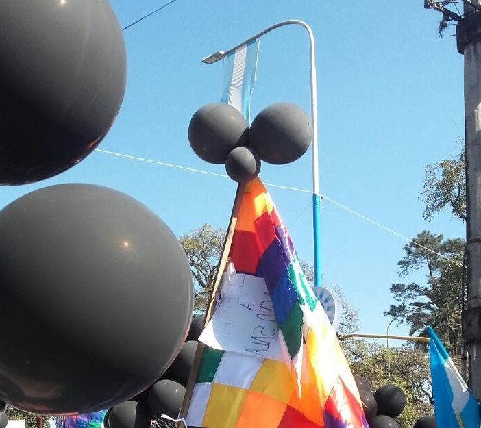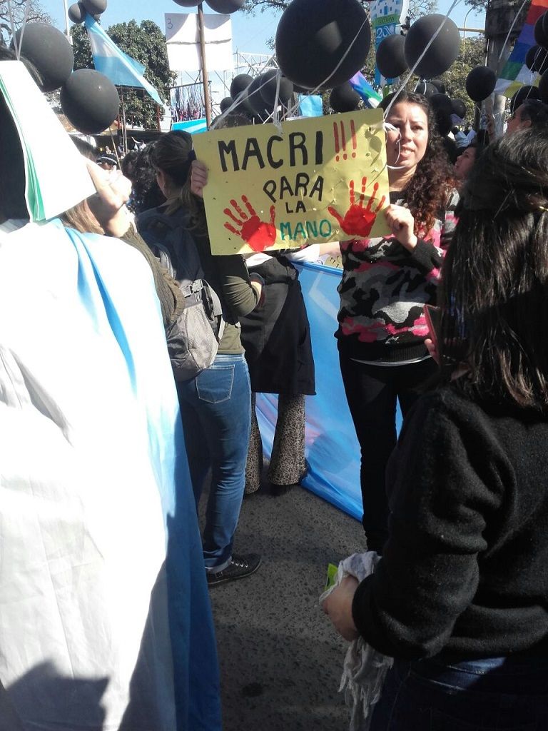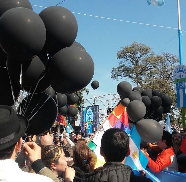 Con una suelta de globos de color negro (y no celestes y blancos como los oficiales) y con carteles y pancartas en contra de las políticas sociales, económicas, educativas y culturales implementadas por el Presidente Mauricio Macri, los manifestantes intentaron hacer escuchar su voz.