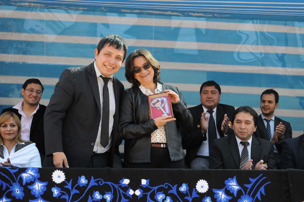 Juan Pablo Sánchez y la intendenta de Fiambalá, Roxana Paulón, en una colorida