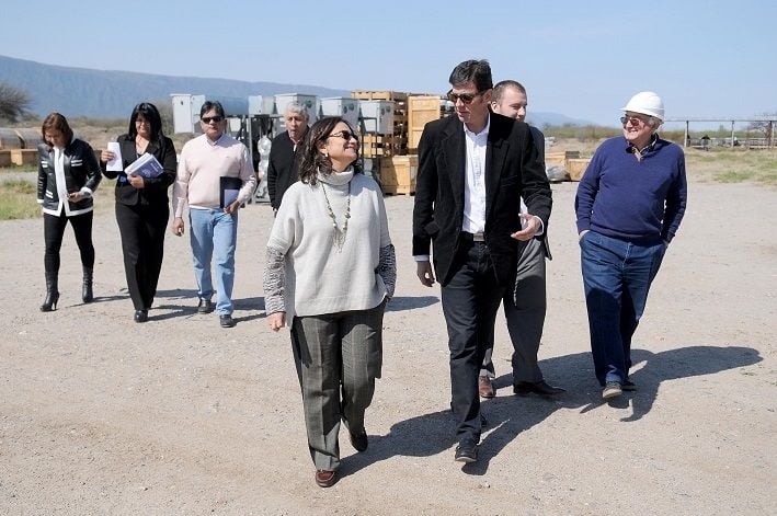 La Gobernadora Lucía Corpacci, recorrió junto al ministro de Servicios Públicos, Guillermo Dalla Lasta, las obras que se están realizando para completar el tendido de una línea de alta tensión de 132 Kv desde el paraje Divisaderos hasta la Estación Transformadora Valle Viejo.
