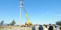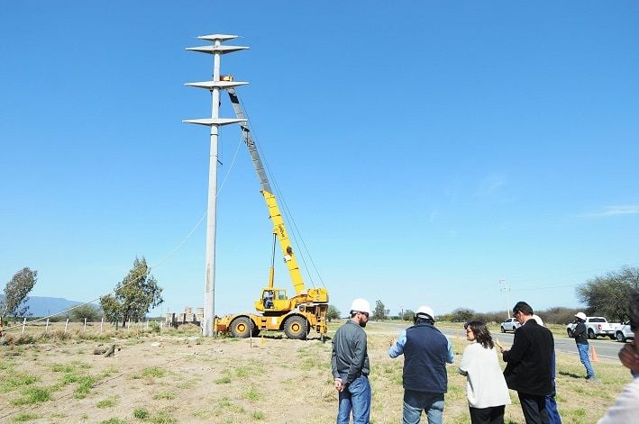 El recorrido que realizó Lucía se completó en un punto de la Ruta Provincial donde con una grúa de gran porte se elevó uno de los casi de 300 postes que tiene el trazado y que cuentan con más de 21 metros de altura. Esta estructura de hormigón es la que conducirá una doble terna de líneas de cables de aluminio con la potencia eléctrica hacia la Estación Transformadora y a ellas se agregan dos conductores más de resguardo(denominados OPGW) y que contiene una "alma” de fibra óptica para el monitoreo.