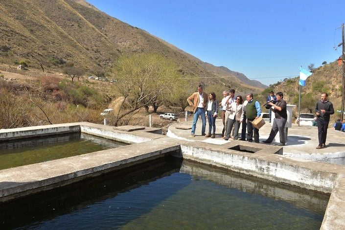 Lucía, en su recorrido por Los Angeles, visitó junto al secretario de Ambiente el futuro criadero de truchas, que se utilizará para posteriormente sembrar los distintos ríos de la Provincia. El secretario Zabaleta indicó que la obra tiene un avance aproximado del 70 por ciento, y estimó que de no mediar contratiempos podría ser habilitado este mismo año.