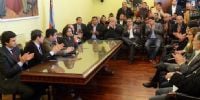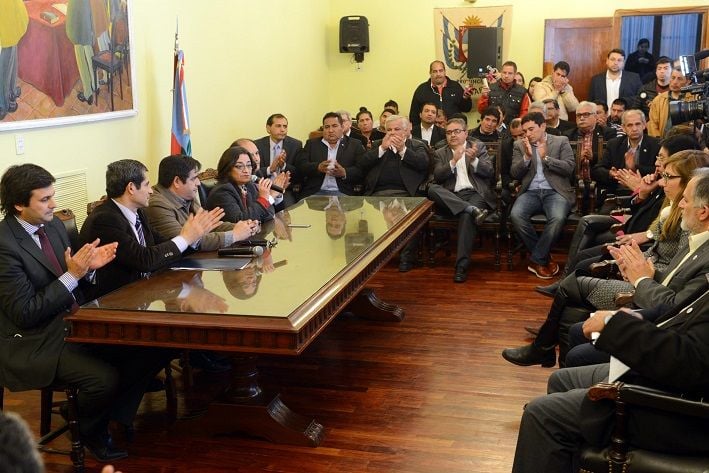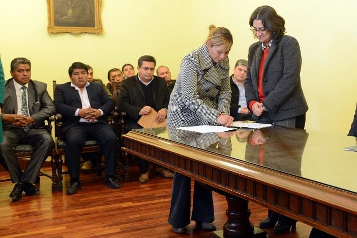 La Gobernadora Lucía Corpacci, estuvo acompañada por el ministro de Hacienda, Ricardo Aredes; el ministro de Gobierno, Gustavo Saadi; el subsecretario de Asuntos Municipales, Gustavo Aguirre y los jefes comunales de toda la provincia.