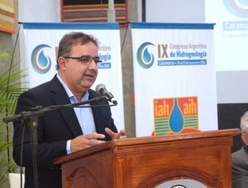 En la mesa de presentación, también brindaron la bienvenida al congreso el presidente de la Comisión Organizadora del evento, Esteban Tálamo, el presidente del Grupo Argentino de la Asociación Internacional de Hidrogeólogos, Carlos Schulz, el ministro de Obras Públicas de la Provincia, Rubén Dusso, el decano de la facultad de Tecnología y Ciencias Aplicadas de UNCa, Carlos Savio y el rector de UNCa, Flavio Fama.