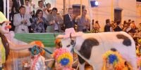 Lucía finalizó su recorrido en la localidad de Saujil participando del acto protocolar, que incluyo el desfile cívico militar, el corte de una gigantesca torta de 400 kilos y el cierre con un show de fuegos artificiales.