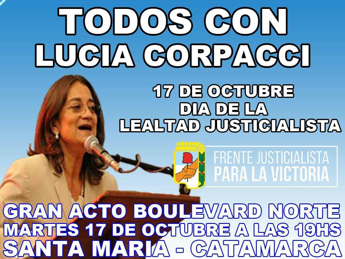 La convocatoria se hace con la consigna de "todos con Lucía Corpacci”, en adhesión a los candidatos del Frente Justicialista para la Victoria (FJPV).