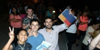 vecinos que se acercaban a la ruidosa columna de manifestantes.