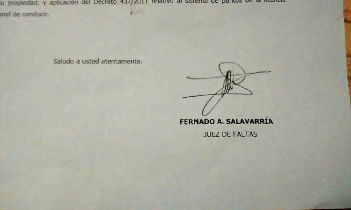 de ustedes o conocido, recibió una multa del Radar de Recreo, con mi firma